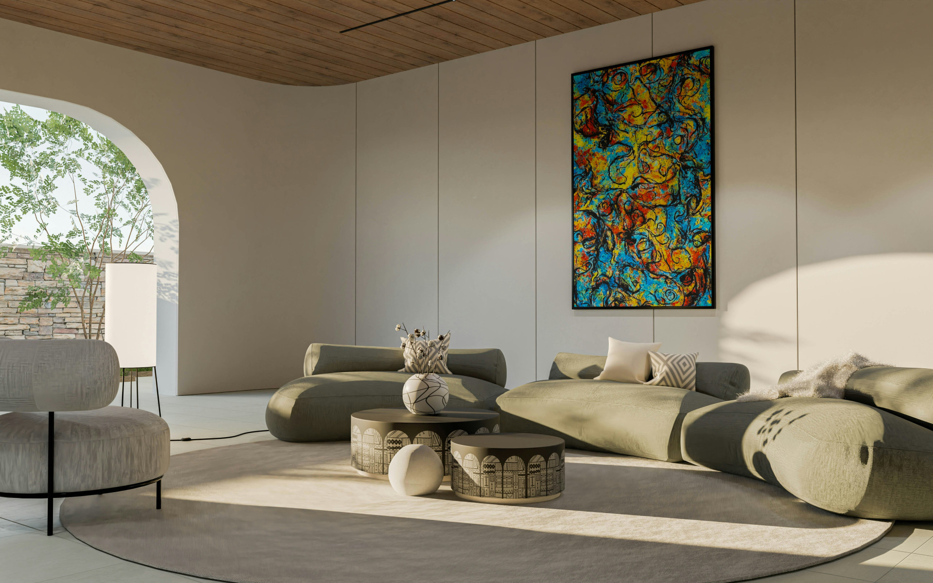 Kunst påvirker også stemningen. Et maleri med bløde, organiske former kan skabe ro, mens stærke farver og dynamiske penselstrøg tilfører energi. Det handler ikke kun om æstetik – men også om, hvordan du ønsker, at rummet skal føles at opholde sig i.